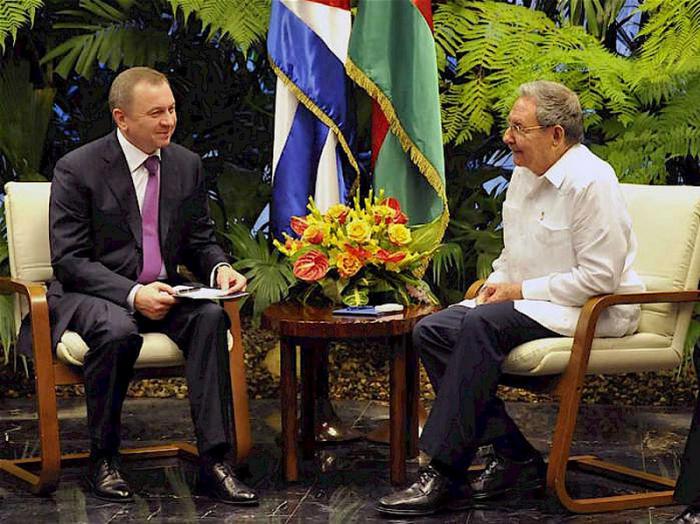 June 25 - Army General Raúl Castro Ruz, president of the Councils of State and Ministers, received the honorable Vladimir Vladimirovich Makei, minister of Foreign Relations of the Republic of Belarus, on his official visit to Cuba. Raúl and Makei discussed the excellent state of bilateral relations between the two countries and future prospects. Makei was accompanied by the honorable Vladzimir A. Astapenka, ambassador for Belarus in Cuba. Participating on the Cuban side was Bruno Rodríguez Parrilla, minister of Foreign Relations.