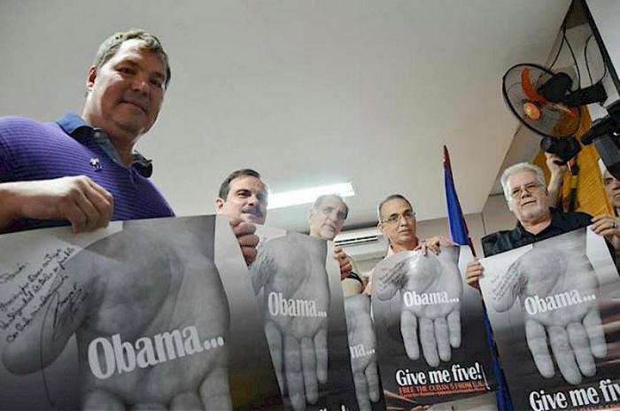 Yesterday evening, January 5, Ramón, René, Fernando and Antonio, and their families came together at the Union of Cuban Writers and Artists’ Rubén Martínez Villena Hall to participate in the ‘Fifth for the Five’ event which has been held on the 5th of every month for the last two years, to show solidarity with the five antiterrorsists, until recently unjustly imprisoned in the United States.