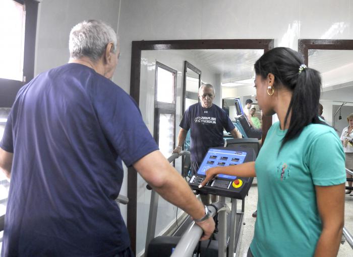 Able to attest to the center’s effective treatment are out patients Roberto Machado Navarro, Rolando Díaz Rosales and Armando Quiñones Machado, who attend the gym six hours a day, to receive movement improvement therapy.