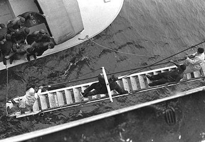 After many hours at sea, drawing close to the shores of Puerto Rico, with athletes exercising and training on deck, a U.S. Coast Guard plane approached the ship flying low, and dropped a note saying that our entry into U.S. territorial waters, San Juan, or Puerto Rico was prohibited. Filmmaker Santiago Álvarez from the Cuban Film Institute (ICAIC) recovered the note, and cameraman Iván Nápoles, filmed the plane's swoop over the ship to preserve the memory for all time.