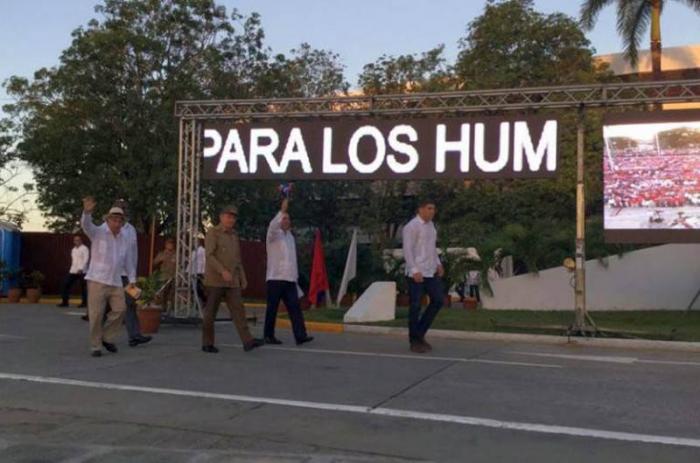 José Ramón Machado Ventura, with members of the Political Bureau and provincial Party and government authorities on hand. Sancti Spíritus is hosting the national celebration for the first time on 30 years.