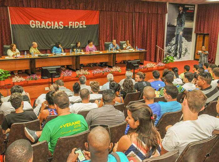 Presiding over the meeting were Olga Lidia Tapia, a member of the Party Central Committee Secretariat, Jennifer Bello, president of the FEU and a member of the Council of State and Susely Morfa, UJC National Committee first secretary, among others.