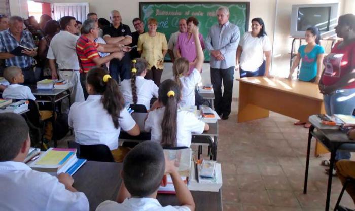 During his tour, Díaz-Canel conversed with students and teachers, discussing expectations for the coming year, asking about resources and study materials available, as well as teacher preparation in key subjects such as History.