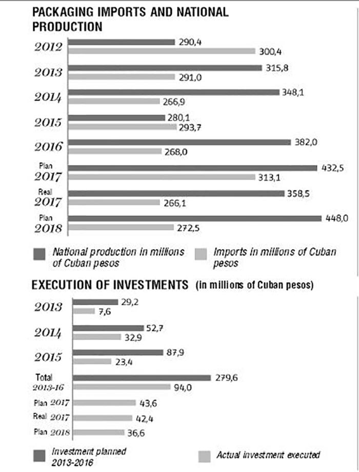 According to Yamilín González Milián, Mindus deputy director of Packaging and Containers, national industry production in 2017 grew by 26% compared to the previous year, and investments also increased, to reach in the order of 42.4 million pesos.
