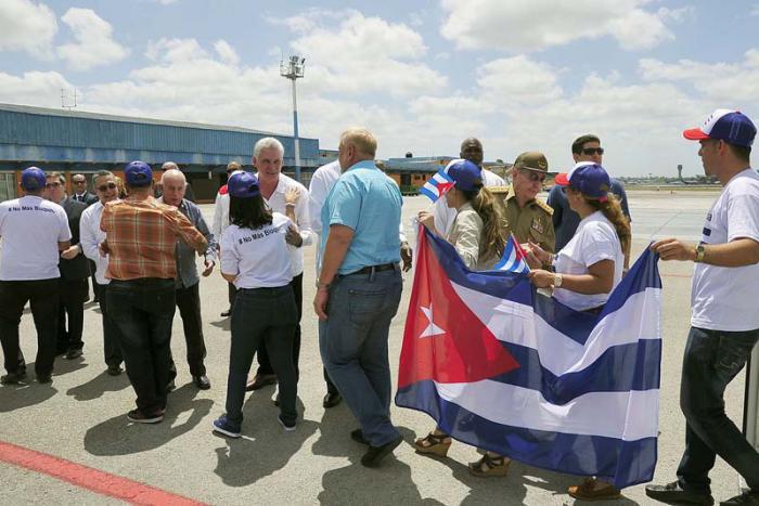 Standing at the foot of the plane's stairs, at José Martí International Airport, the Army General greeted each one - diplomats, youth, deputies, and representatives of civil society and the media, who waving Cuban flags as they arrived yesterday afternoon, from Lima, Peru.
