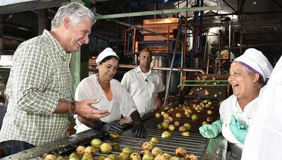 One of these workers was Yusimí Sánchez, who told the President of her dissatisfaction with wages during certain times of the year, when economic activity decreases, but also reiterated her commitment to the company where she has worked as an operator for 18 years.