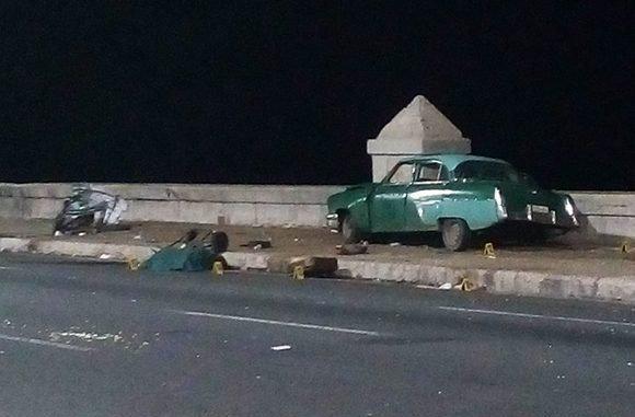 “The incident occurred when a privately owned car, driven by a 33-year-old man, traveling along the middle lane of Malecón Avenue, from Galeano in the direction of Paseo Street, drove up onto the sidewalk and hit people who were gathered there and then crashed into the seawall.”