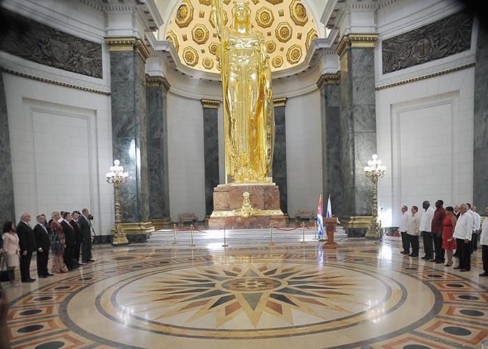 In a July 24 ceremony to re-inaugurate the statue was presided by Army General Raúl Castro Ruz, who with Russian Foreign Minister Sergey Lavrov, cut the ribbon, in the presence of Political Bureau members Esteban Lazo Hernández, National Assembly President, and Cuban Foreign Minister Bruno Rodríguez Parrilla.Also on hand, were other government officials and Gambian Foreign Minister Dr. Mamadou Tangara, who, along with Lavrov, was on an official visit to our country.The statue, according to Dr. Eusebio Leal Spengler, Havana city historian, represents "a symbol of the nation", which for decades has presided over the Capital’s great hall. At the time of its creation, and still today, the República is the third tallest indoor statue in the world, second only to the Golden Buddha in Japan and that of Abraham Lincoln in Washington.