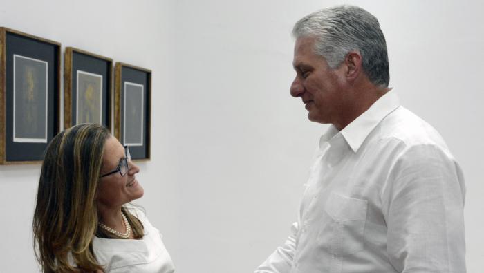 The President of Cuba´s Councils of State and Ministers, Miguel Díaz-Canel Bermúdez, yesterday August 28, received Canada’s Foreign Minister, the Honorable Christya Freeland, who is making a working visit to our country.