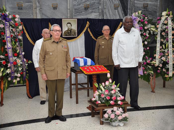 The first honor guard, including Raúl and Political Bureau members Esteban Lazo Hernández, president of the National Assembly of People's Power and the Council of State; José Ramón Machado Ventura, second Party secretary; and Army General Ramón Espinosa Martín, deputy minister of the Revolutionary Armed Forces (FAR), opened the tribute to the Rebel Army commander, at the Veterans Pantheon in Havana’s Colón Cemetery.