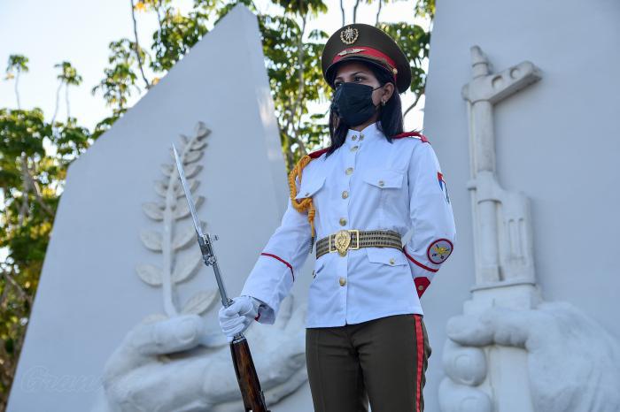 The ceremony, presided by Major General Ramón Pardo Guerra, was also attended by the head of the Belarus diplomatic mission in the Cuba, Alexander N. Alexandrov, and chargés d'affaires of Kazakhstan and Azerbaijan, Azamat Abdraimov and Ilham Aghayev, respectively. After the laying the floral wreaths at the site from these embassies, the Revolutionary Armed Forces and the Cuban Institute of Friendship with the Peoples, seven trees were planted in the Garden of Memory.