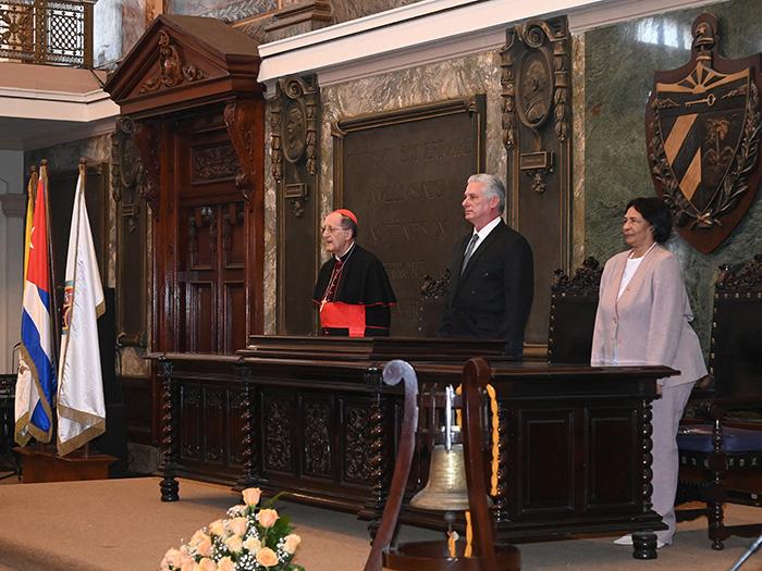 Also in attendance were Monsignor Emilio Aranguren Echeverría, president of the Conference of Catholic Bishops of Cuba; Monsignor Giampiero Gloder, Apostolic Nuncio in Cuba, and Cardinal Juan de la Caridad García Rodríguez, Archbishop of Havana, among other personalities from the Government, the Party and ecclesiastical representatives.