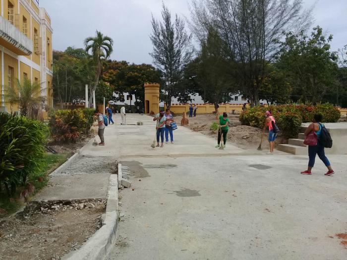 "The Moncada barracks is the symbol of Santiago, I volunteecome to workr as many hours as necessary," confessed María Brooks, a worker of an office whose collective dedicated a day to the renovation of the Ciudad Escolar.
