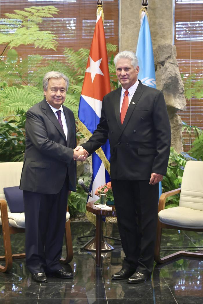 The president of Cuba, Miguel Díaz-Canel, and the secretary general of the United Nations, António Guterres, agreed the eve on the importance of the G77 and China Summit for the promotion of the Development Goals Sustainable (SDG).