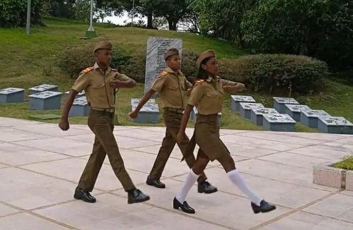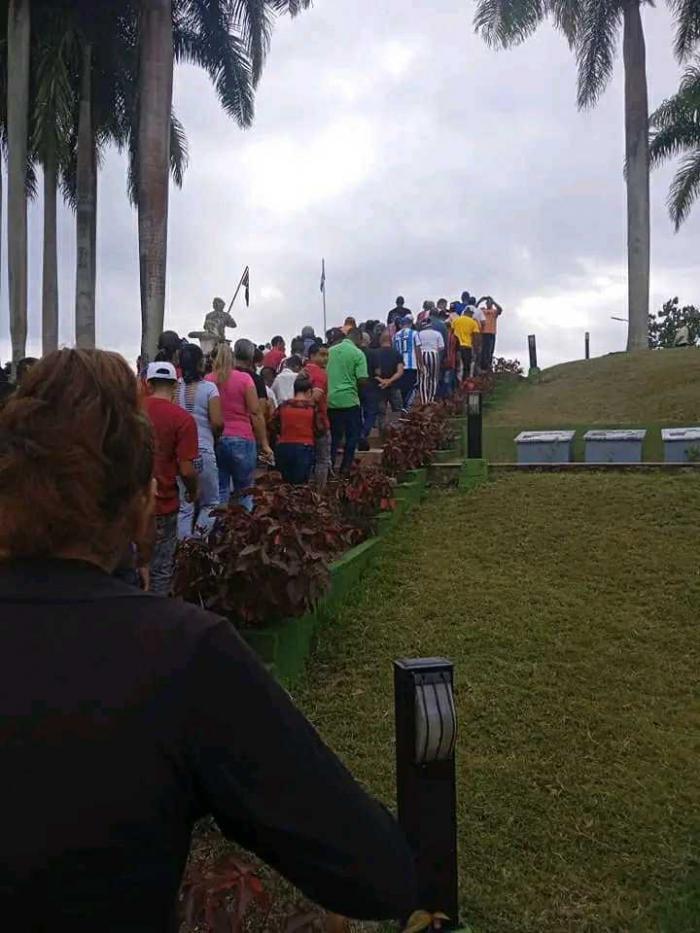Students of the Camilo Cienfuegos Military School, in Contramaestre, carried out the guard of honor, next to the marble slab that guards the remains of the Commander of the Revolution, leader of the Front, to whom the inhabitants of the mountain range also paid tribute.