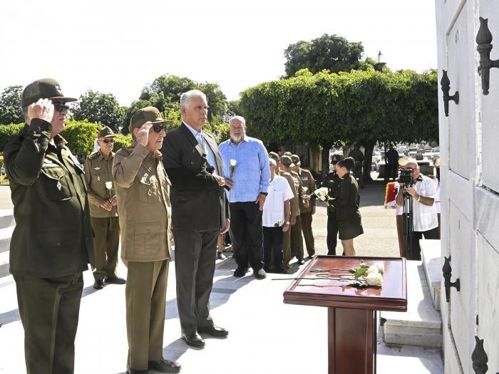 The tribute was solemn and intimate, gun salutes, gratitude, silence...To conclude, Raúl and Diaz-Canel were the first to lay white roses near the niche that protects the remains of such a distinguished Cuban. Afterwards, the rest of the attendants to the ceremony did it, in which six floral offerings were distinguished: from the Army General, the President of the Republic, the Revolutionary Armed Forces, the Ministry of the Interior, the Association of Combatants of the Cuban Revolution and the family.