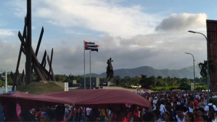 SANTIAGO DE CUBA.— About 100,000 inhabitants of Santiago de Cuba, representing all the compatriots, paid homage to Fidel, on the eighth anniversary of the deposit of his ashes in the patrimonial cemetery of Santa Ifigenia, in the already traditional pilgrimage from the Revolution Square Major General Antonio Maceo Grajales to the cemetery.