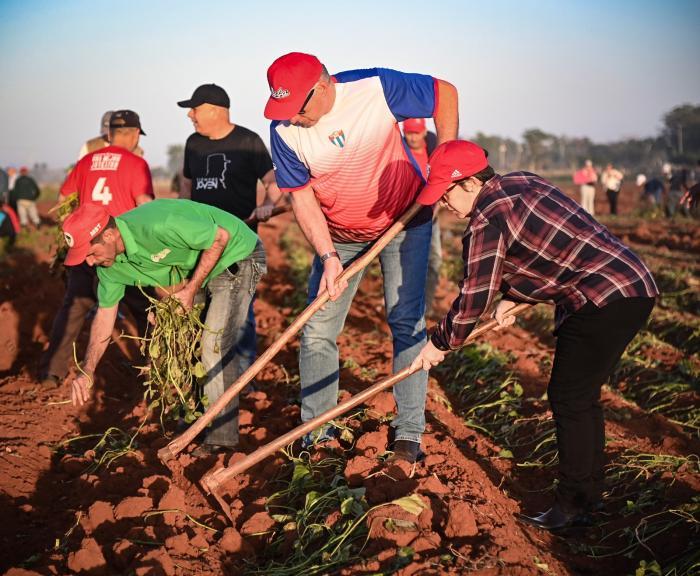 At the foot of the fields, under a sun that had not yet pierced the morning mist, the First Secretary of the Central Committee of the Party and President of the Republic, Miguel Díaz-Canel Bermúdez, accompanied planting efforts in the municipality of Bauta, in Artemisa province. There, several generations of Cubans engaged in agricultural work, in a message that underscores the importance of food production today.