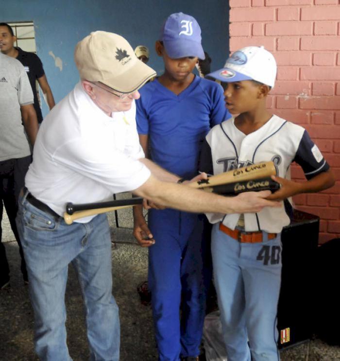 Canadian Bill Ryan was once named a "messenger for humanity". And he demonstrated why, October 22 in the Los Pinos Sports Complex, where, on behalf of Decorated Hero of the Republic of Cuba, Gerardo Hernández Nordelo, he delivered four baseball bats which he had made himself, to two teams in the 11-12 age group. The teams representing the municipalities of Arroyo Naranjo and 10 de Octubre lined up at the entrance of the facility and, after a karate demonstration by students of CD Los Pinos, Ryan - accompanied by his wife Norma - handed over the bats, which are inscribed with Los Cinco, and a CUBACAN logo designed by Gerardo himself. An active member of the Committee to Free the Five, Ryan recalled that the idea of making the bats emerged five years ago, and that their quality has already been recognized by Sam Bat, a Canadian company which produces for the U.S. Major Leagues. Ryan said that, before his trip to Cuba, Gerardo had asked him to make sure the bats were used, "Don’t hang them up as trophies on a wall, use them in your daily games and when they break, then yes, they can be kept as souvenirs." As well as family members of the young baseball players and their coaches, the Olympic champions Mijaín López and Hector Milian, boxing world champion Sixto Soria and the provincial sports director Carlos Gonzalez attended the event.