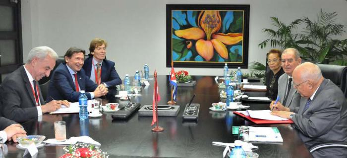 Ricardo Cabrisas Ruiz, a Council of Ministers vice president, held a working meeting in the afternoon of Wednesday, March 2, with Rudolf Scholten, director general of the Austrian Control Bank. The two undertook a comprehensive analysis of the current situation and the outlook for economic, commercial and financial relations between the two countries, considering the results of the Cuba-Austria Business Forum, held earlier that the day.