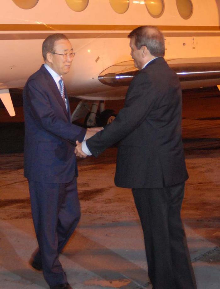 Moon traveled to Havana accompanied by President of the UN Security Council, Francois Delattre.
