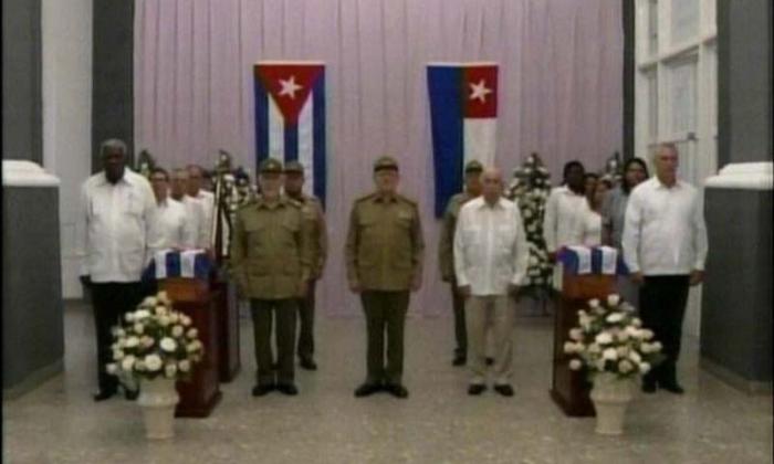 07:16.- Following the interment in their respective niches, a permanent guard of honor for both patriots begins, joining the permanent guards to Martí and Fidel.