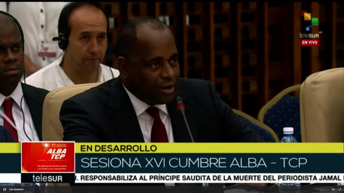 Chet Greene, Antigua and Barbuda’s Minister of Foreign Affairs, International Trade and Immigration, took the floor, sharing remarks from the country’s Prime Minister, Gaston Browne, who expressed gratitude to ALBA, President Maduro and Venezuela, and noted that many of the integration objectives formulated in the Managua declaration have been met.