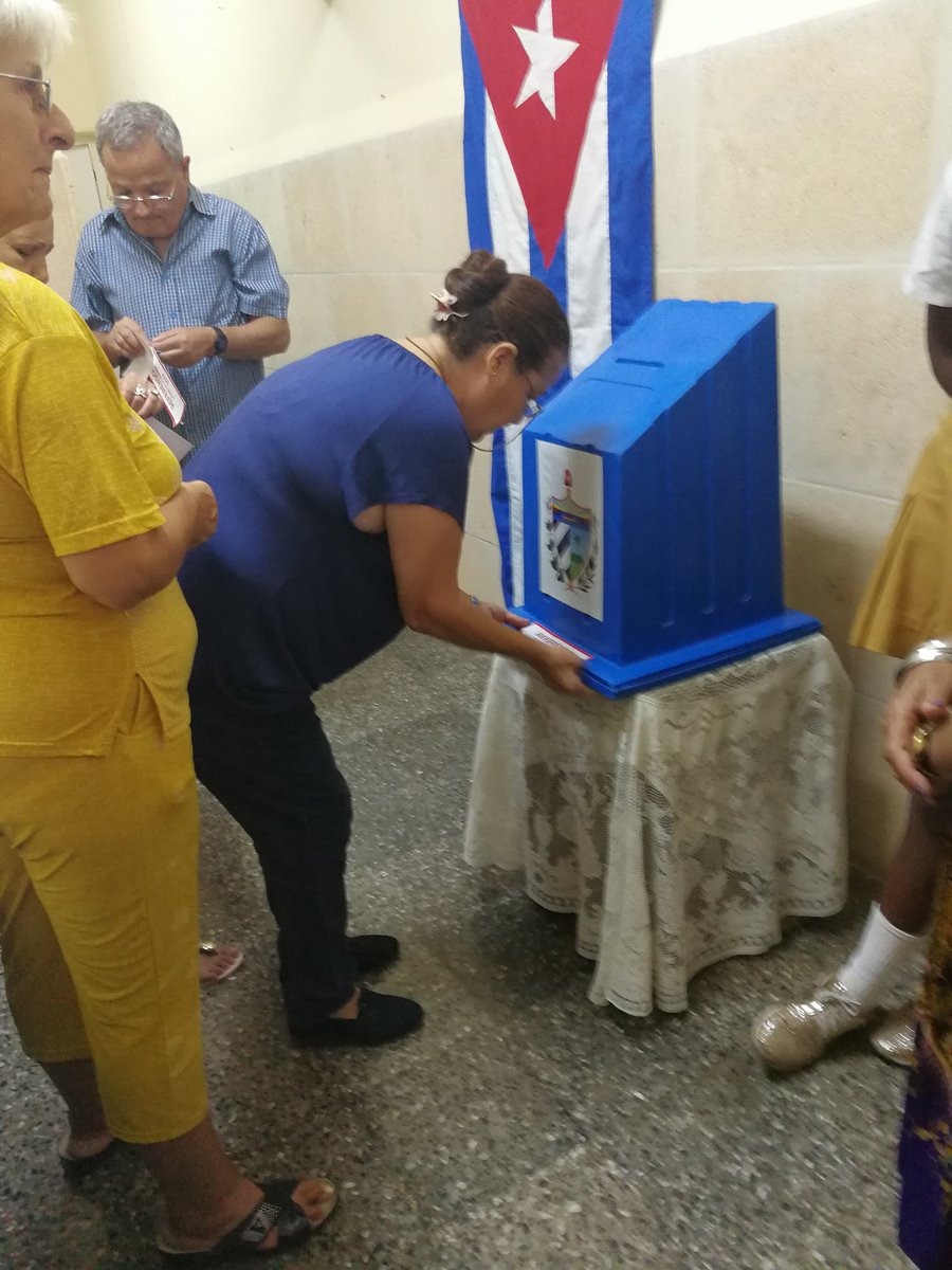 Comptroller of the Republic Gladys Bejerano Portela, after exercising her right to vote, commented via Twitter, “I vote Yes for my children, my grandchildren, for my family, for my compañeros, for my heroic people and, why not, for the world, because Cuba is the hope of the all who love life.”