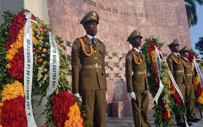Floral wreaths from Army General Raul Castro, President of the Republic Miguel Díaz-Canel Bermúdez, National Assembly of People's Power President Esteban Lazo Hernández, and the people of Cuba, were placed before the pantheon of July 26th Martyrs.
