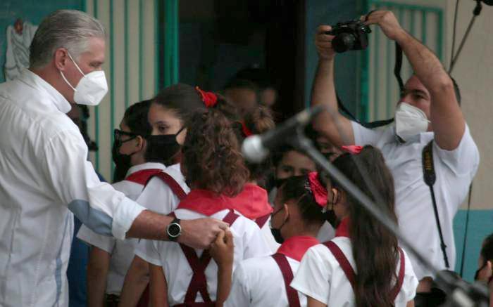 Party First Secretary and President of the Republic Miguel Díaz-Canel Bermúdez greeted students yesterday at the provincial back-to-school ceremony in Havana, held at Pedro Domingo Murillo elementary school.