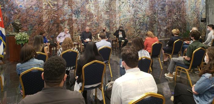 For more than an hour, the President described Cuba’s context and current situation for the guests, to then open an exchange during which expressions of solidarity with the island were accompanied by extensive analysis of the struggle in communications, for our people’s culture and for Cuba.