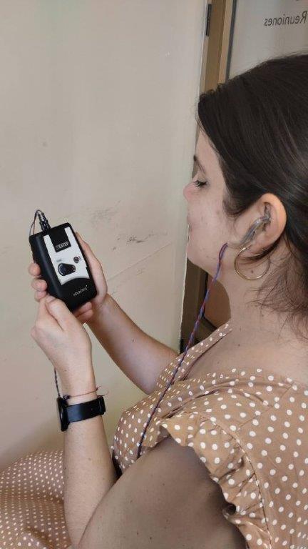 As it is for individual use, the patient can apply the therapy at home, after having been previously trained in its use by specialists. The first step is to place the electrodes in the shell of the left ear, and then press the button that sets the device to work.