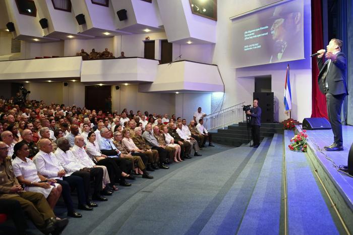 The Universal Hall of the Ministry of the Revolutionary Armed Forces was the stage for the tribute, which brought together artists from different generations, and was also attended by members of the Political Bureau Esteban Lazo Hernández, president of the National Assembly of People's Power and the Council of State; Manuel Marrero Cruz, Prime Minister of the Republic; and Roberto Morales Ojeda, Secretary of Organization of the Central Committee of the Party.