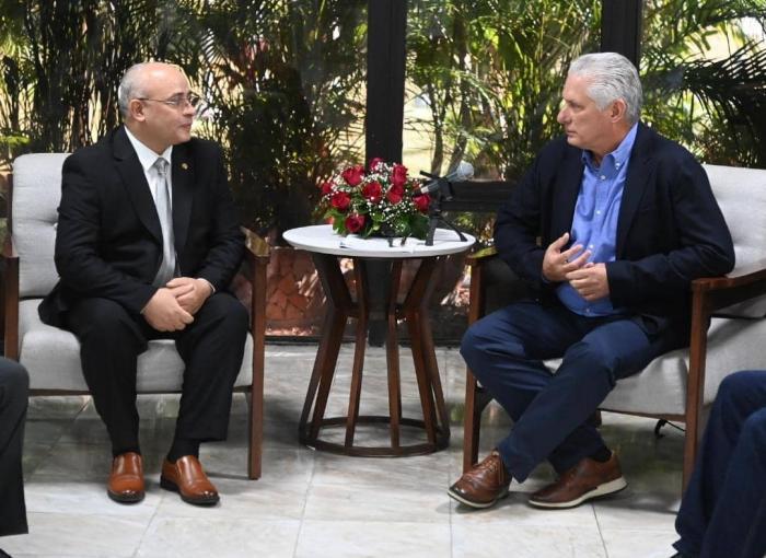 Díaz-Canel then exchanged with Feitas Benlakehal, president of the Parliamentary Group of Friendship with Cuba in the National People's Assembly of Algeria, and highlighted the historic relations that unite the parties and parliaments of both nations, and ratified the will to continue strengthening and deepening them.