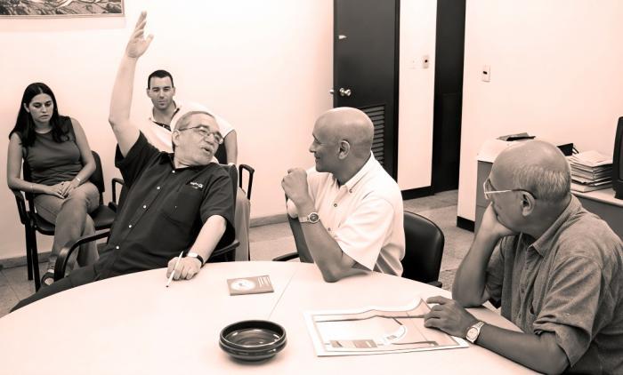A historic photo of the Granma International newsroom sums up the essence of this weekly newspaper. In it, the team poses smiling in front of a huge world map. "Our work reaches the world," says a sign at the top.