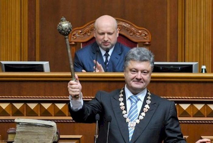 The new Ukrainian President, Piotr Poroshenko, swore an oath to the unity of a divided country, a country at war, with some inhabitants subjected to bombings and persecution by a government supported by the West.