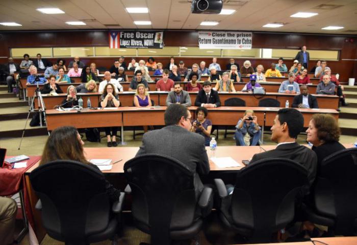 Friday night about 175 people attended the closing event at UDC Law School in Washington DC. Alicia Jrapko from the International Committee for Peace, Justice and Dignity was the moderator of the evening forum that focused on the current state of U.S./Cuban relations. Panelists included well-known Cuban attorney Jose Pertierra who practices in Washington DC, Stephen Kimber, Professor of Journalism at the University of King's College in Halifax and author of What Lies Across the Water: The Real Story of the Cuban Five, and Jorgito Jerez.