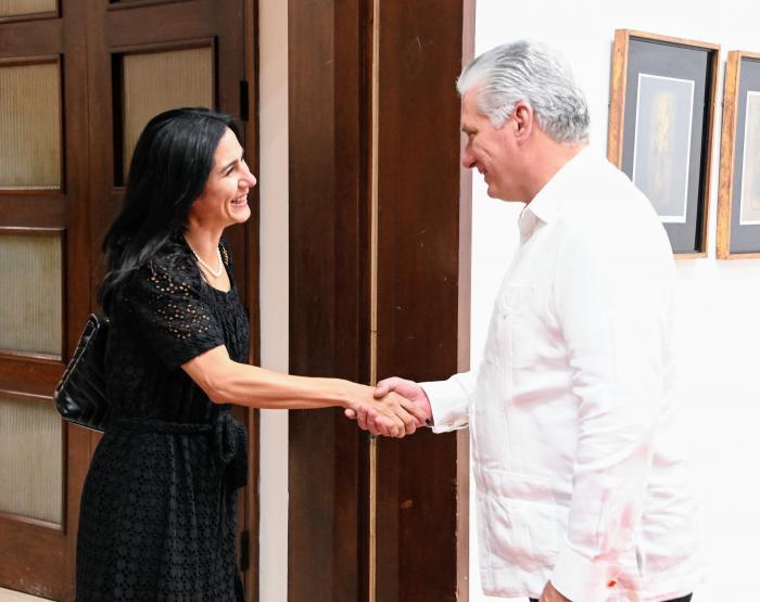 President Miguel Díaz-Canel Bermúdez thanked yesterday the support that Cuba has historically had from the United Nations Development Program (UNDP), when receiving, at the Palace of the Revolution, Michelle Marie Muschett Zimmermann, UN undersecretary general and director general for Latin America and the Caribbean of that important global network, present in some 170 countries and territories.