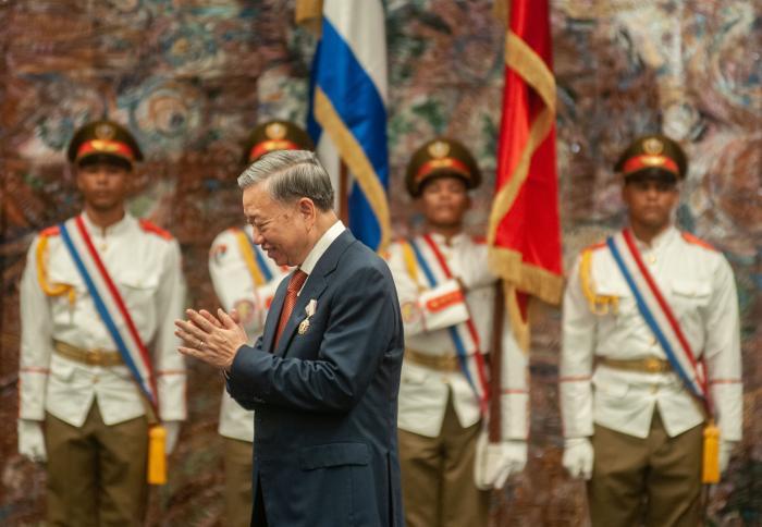 The José Martí Order now shines on the chest of Vietnam's President To Lam, to whom the insignia, instituted in 1972 to be awarded to Cuban citizens, foreigners and heads of state or government for great deeds in favor of peace and humanity, and for valuable and extraordinary contributions in education, culture, science and sports, as well as for outstanding merits in creative work, was imposed on Thursday.