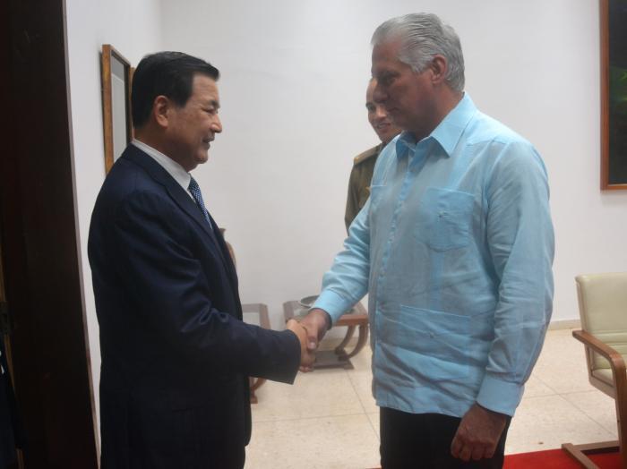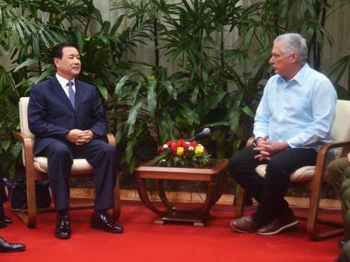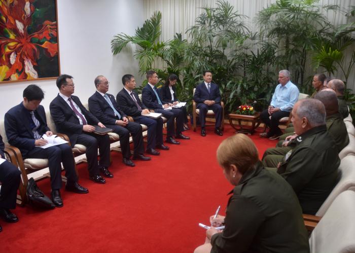 "It is a pleasure to receive you at the Palace of the Revolution," assured the First Secretary of the Central Committee of the Communist Party and President of the Republic, Miguel Díaz-Canel Bermúdez, to Commissar General Wang Xiaohong, State Councilor and Minister of Public Security of China.