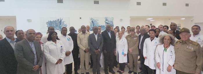 Esteban Lazo's visit continued at the Cabinda General Hospital, where he held an emotional meeting with a delegation of more than 40 Cuban health workers who are supporting the people of this African nation.